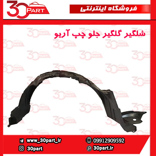 شلگیر گلگیر جلو چپ آریو-S300 یا همان گِل پخش کن قطعه ای از جنس پلاستیک است. که در پشت چرخ و جلوی چرخ به حالتی نیم دایره ای شکل قرار می گیرد. و همانطور که از نامش بر می آید ، سنگ ، خس و خاشاک ، گِل و لای و هر آنچه را که ممکن است به چرخ بچسبد.